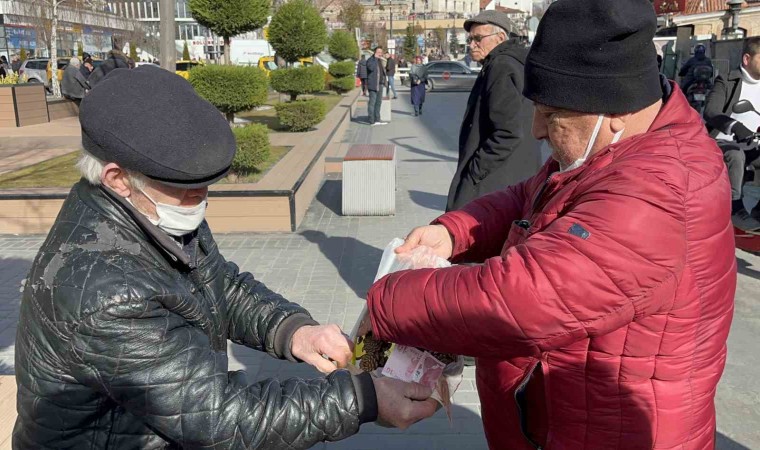 İşini severek yaptığını söyleyen Mustafa Kor, "Ellerimle kozalak sepetleri yapıyorum. Şehir merkezinde satıyorum. Kozalakları köylerin çamlıklarından topluyorum. Uğraş isteyen bir iş. Bir tane kozalak sepetinin yapımı 2 saat sürüyor. 60-70 liraya satışını yapıyorum. Günlük 2-3 tane satıyorum. Bolu’nun havası soğuk. Dışarıya güneşli günlerde çıkıyorum" dedi.
