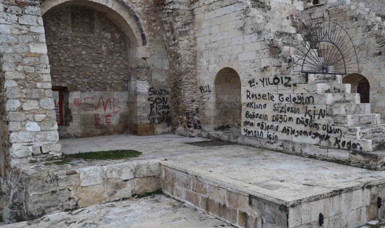 Sivas’ta bulunan ve 751 yıldır ayakta duran Çifte Minareli Medreseye sprey boyayla yazı yazan kişiler hakkında soruşturma başlatıldı.