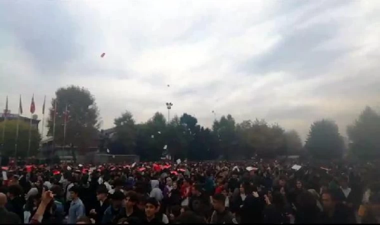 Mertcan KELEŞ/ DÜZCE, (DHA)- DÜZCE’de, 8 bin 100 lise öğrencisinin katılımıyla Cumhuriyet’in 100’üncü yılı etkinlikleri kapsamında düzenlenen ’Türk Bayrağı’ koreografisi ile rekor denemesi gerçekleştirilemedi. 4 saat beklemeleri üzerine duruma tepki gösteren öğrenciler alanı terk edip ellerindeki kartonları havaya fırlatırken, bazı öğrenciler de kalabalığa bozuk para atarak, başka öğrencilerin hafif şekilde yaralanmasına sebep oldu. Etkinlikte, Düzce İl Milli Eğitim Müdürlüğü’nü temsil eden Şube Müdürü Yasemin Çağır, olayın ardından öğretmenlere gönderdiği toplu mesajda, ”Proje planlaması tamamen belediyemize aitti. İsyan haklıydı, tepkiler yanlıştı” dedi.
