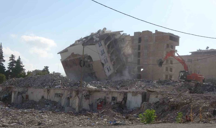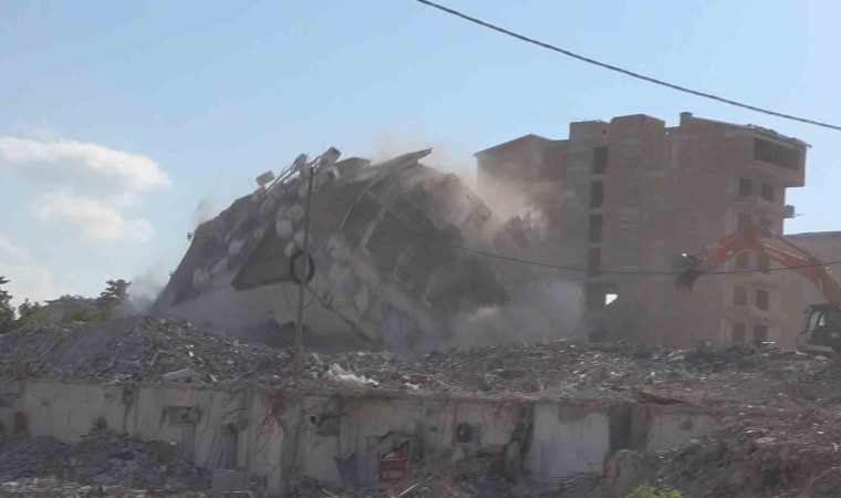 Kahramanmaraş merkezli depremlerde ağır hasar alan Hatay’da yıkım ve enkaz kaldırma çalışmaları aralıksız sürüyor. Enkaz kaldırma çalışmasının yüzde 80 seviyesini geçtiği Antakya ilçesinde 8 katlı bina, iş makinesiyle halatla çekilerek yıkıldı. Binanın kağıt gibi yerle bir olduğu anlarsa kameraya yansıdı. Yıkım sorunsuz olarak gerçekleştirildi.