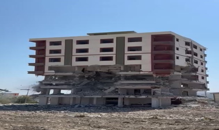 Kahramanmaraş merkezli depremlerde ağır hasar alan Hatay’da mahkeme süreci sona eren binaların yıkım ve enkaz kaldırma çalışmaları aralıksız sürüyor. Antakya ilçesi Küçükdalyan Mahallesi’nde bulunan 8 katlı bina, iş makinesinin dokunuşuyla kontrollü olarak yıkıldı. Binanın yıkılma anı ise kameralara saniye saniye yansıdı. 8 katlı binanın yıkımı esnasında herhangi bir olumsuzluk yaşanmadı.