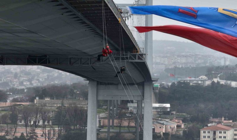 İstanbul İl Jandarma Komutanlığında görevli 6 kadın astsubay, 8 Mart Dünya Kadınlar Günü etkinlikleri çerçevesinde 15 Temmuz Şehitler Köprüsü’nden halatlarla Boğaz’a indi. Vatandaşlar tarafından ilgiyle izlenen kadın astsubayların nefes kesen gösterileri havadan görüntülendi.