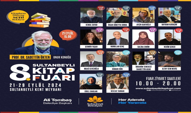 Sultanbeyli Kent Meydanı’nda düzenlenecek kitap fuarının onur konuğu Prof. Dr. Sadettin Ökten oldu. Toplamda 150 yayınevinin yer alacağı fuara; Nurullah Genç, Kemal Sayar, İhsan Süreyya Sırma, İbrahim Tenekeci, Saliha Erdim, Hulki Cevizoğlu, Nedim Şener, Ayçin Kantoğlu, Prof. Dr. Nevzat Tarhan, Osman Eğin, Sibel Eraslan, Saadettin Acar, Altay Cem Meriç gibi önemli isimler katılacak. Ayrıca bu yazarlar söyleşi ve imza etkinliği de düzenleyecek.