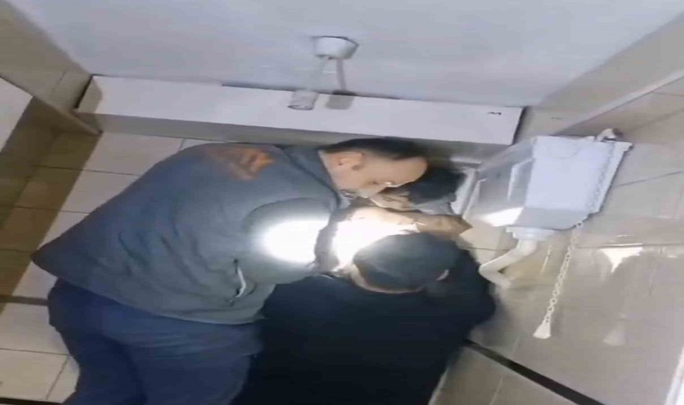 Bursa’nın İnegöl ilçesinde bir apartmanın havalandırma boşluğunda mahsur kalan yavru kediyi, 8 yaşındaki Selim Bulut kurtardı.