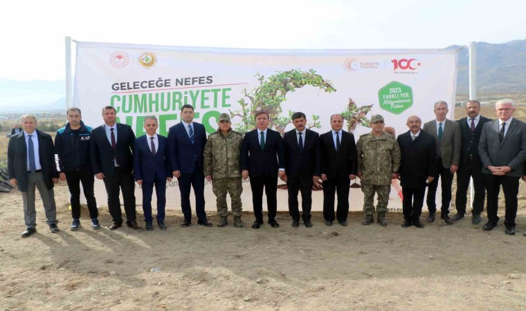 Cumhuriyetin 100. yılı etkinlikleri kapsamında bugün Erzincan’da 80 ilden gelen toprakla fidan dikimi etkinliği gerçekleştirildi.
