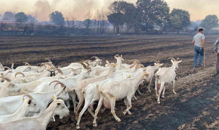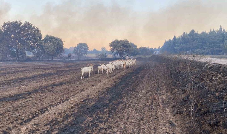 Çanakkale’nin Ezine ilçesine bağlı Üvecik ve Yeniköy köyleri arasında tarım arazisinde çıkan ve ormanlık alana sıçrayan yangında bir vatandaş, 80 küçükbaş hayvanını yanmaktan son anda kurtardı.