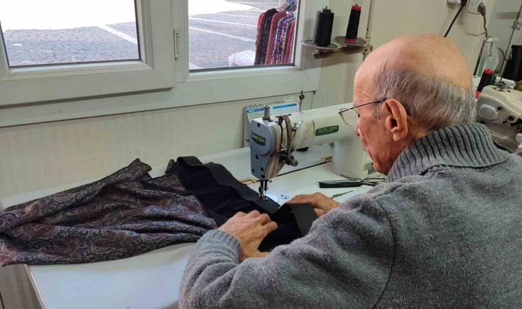 Kahramanmaraş’ta bir esnaf, 80 yaşında olmasına rağmen baba mesleği terziliği devam ettiriyor.