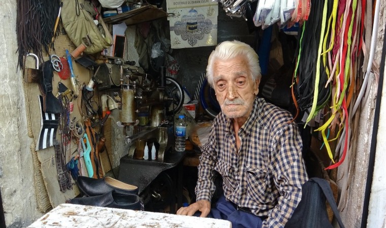 Mardin’in Nusaybin ilçesinde 2 metrekarelik dükkanda ayakkabı tamiri yapan 80 yaşındaki Hıdır Bahader, zor şartlara rağmen işini sürdürüyor.