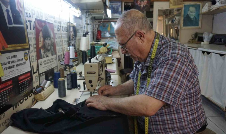 Edirne’de ilkokulu bitirdikten sonra çırak olarak terzilik mesleğine adım atan ve kısa sürede kendisini geliştirerek işinin ustası olan 80 yaşındaki İbrahim Koç, emekli olduktan sonra kendini mesleğine adadı.