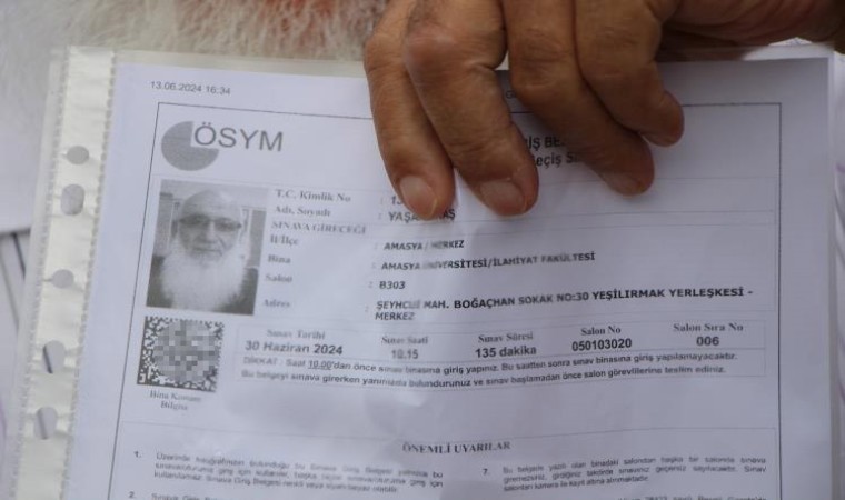 Amasya Üniversitesi İlahiyat Fakültesi’ndeki sınav salonunun girişine ilk gelenler arasında olan Aktaş, “Bu sınava 4. girişim. İnşallah bu sefer kazanacağım. Çok çalıştım” dedi. İlkokul diplomasına mezun olduğu okulun sisteminde bulamaması üzerine ulaşamayan ve 70 yaşındayken açık öğretime başvurup sırasıyla ilköğretim, lise ve iki yıllık ilahiyat bölümünü başarıyla bitiren emekli elektrik teknisyeni Aktaş, “Okumak çok güzel bir şey. Ölünceye, mezara kadar okuyacağım” diye konuştu.