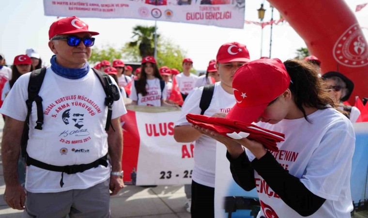 Tütün İskelesi’nde toplanan gençler, Havza’da teslim edecekleri ay-yıldızlı Türk bayrağını Samsun Vali Yardımcısı Fatih Cıdıroğlu’ndan öperek teslim aldı. Yürüyüş, bayrak teslim töreninin ardından polis eskortu ve ambulans eşliğinde başladı.