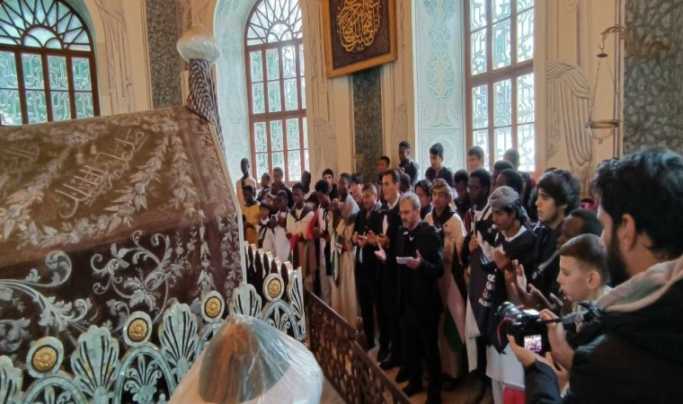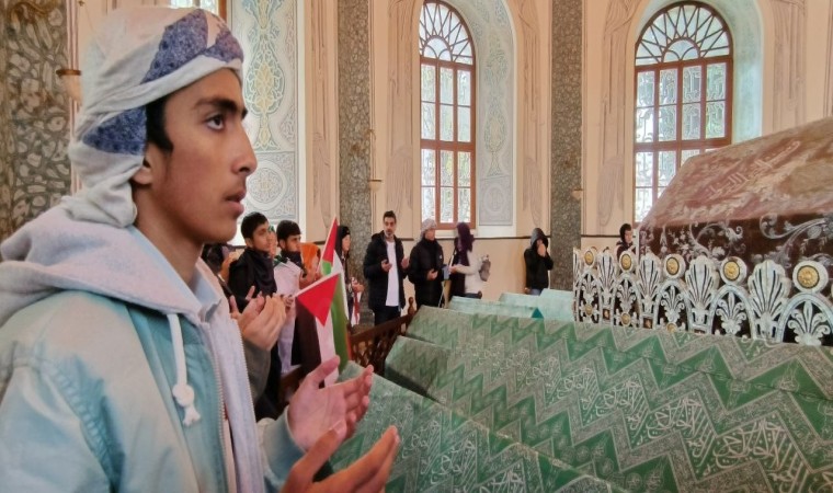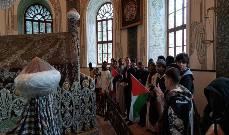 Öğrenciler, Osmanlı İmparatorluğu’nun kurucusu Osmangazi Han’ın türbesini ziyaret edip hep birlikte dua okuduktan sonra türbenin kapısında nöbet bekleyen Osmanlı Alplerinin devir teslimini izledi ve ardından da toplanan kalabalığa "Gazze’nin üzerindeki Puşide-i Siyahı Recep Tayyip Erdoğan kaldıracak" yazılı örtüleri dağıttı.