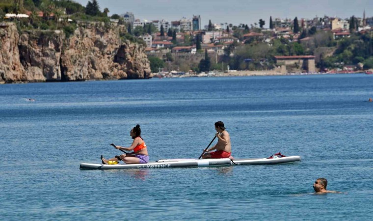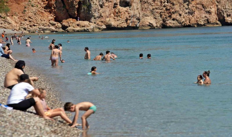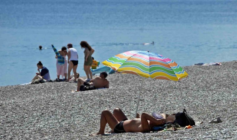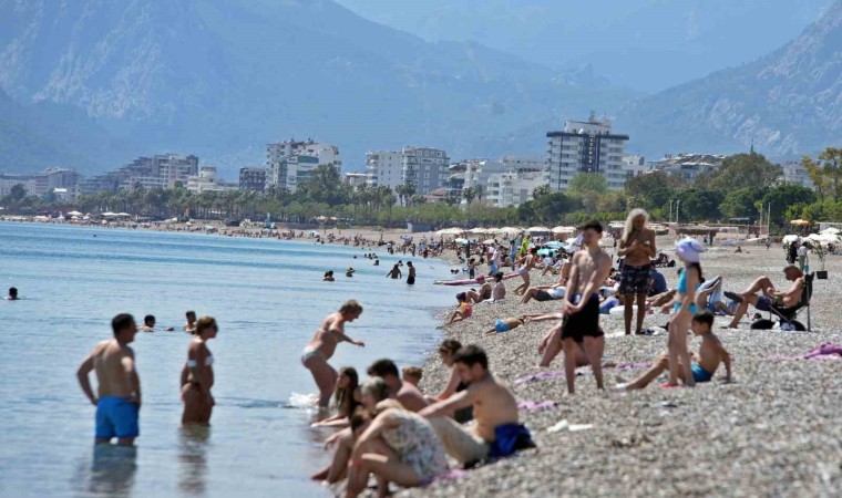 Turizm kenti Antalya’da bayram tatili yoğunluğu yaşanıyor. Sıcak havada dünyaca ünlü sahile akın eden tatilcilerin oluşturduğu görüntü, yaz aylarını aratmadı.