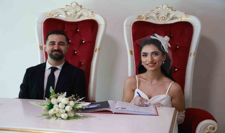 Depremin vurduğu Hatay’da Kurban Bayramı’nı fırsat bilen çiftler, nikah işlemleri için yoğunluk oluşturdular. Kent genelinde 150 çift dünya evine girdi.