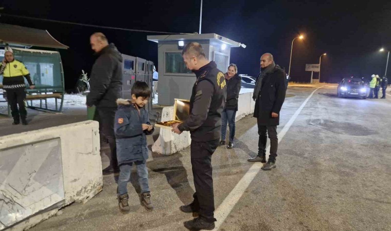 Karaman’da yaşayan ilkokul öğrencisi Yaman, yılbaşında polis uygulama noktalarını gezerek emniyet mensuplarına çikolata dağıttı.