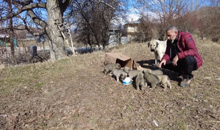 Erzincan’ın Çağlayan Beldesinde 9 yavru dünyaya getiren anne sokak köpeğine mahalleli sahip çıktı.