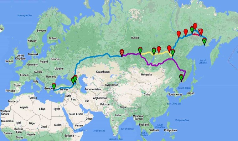 3 Haziran 2023’de İzmir’den yola çıkan Ünverdi ve Şen, Türkgözü Sınır Kapısı’ndan Gürcistan’a geçti. Ardından hiç durmadan Osetya üzerinden Rusya’ya giren maceraperest ikili, Stalin döneminde yapılan Trans Sibirya Demiryolu’nun alternatifi olarak Baykal Gölü’nün kuzeyinden geçen Tayşet şehrinden başlayan 2 bin 300 kilometrelik Baykal-Amur Demiryolu (BAM) hattını takip eden Tında kentine vardı. Dünyanın en uzun demir yollarından biri olma özelliğini taşıyan rotada Ünverdi ve Şen, BAM’ın yapımı sırasında kullanılan patika yol üzerinde ve büyük bir bölümünü arazi sürüşü ile tamamladı. Tında’dan Yakutsk’a geçen ikili, Sibirya’ya ulaştı. Ünverdi ve Şen rotasını, adını Bolşevik Devrimi’nin ardından bölgedeki kıymetli tüm elementlerin çıktığı zengin madenlerde çalışırken ölen işçilerin cesetlerinin, donmuş arazi üzerinde kalmasından dolayı alan 2 bin 100 kilometrelik ‘Kemikler Yolu’na çevirdi. Hiçliğin ortasında 17 gün boyunca Kolyma Highway’de motosiklet süren Ünverdi ve Şen, yağmur çamur demeden donmuş arazi üzerinde çok zor şartlarda giderek Asya kıtasının kara taşıtıyla gidilebilen en doğu noktası olan Magadan’a ulaştı. Gezgin akademisyen Özhan Ünverdi ve Maden Mühendisi Levent Şen, Asya’nın en doğusuna 61 günlük zorlu yolculuğun ardından vardı. Ünverdi ve Şen, 2 Ağustos günü ise Magadan’dan dönüşe başladı. İkili, bu sefer Baykal Gölü’nün güneyine indi. İkili, 9 bin 300 kilometrelik mesafesiyle dünyanın en uzun demiryolu olan Trans Sibirya Demiryolu’nu takip eden rotayı, ardından Gürcistan’ı geçerek 34 gün süren dönüş yolculuğunun ardından Türkiye’ye giriş yaptı. Özhan Ünverdi, tura başladığı nokta olan İzmir’e 5 Eylül 2023 günü vardı.