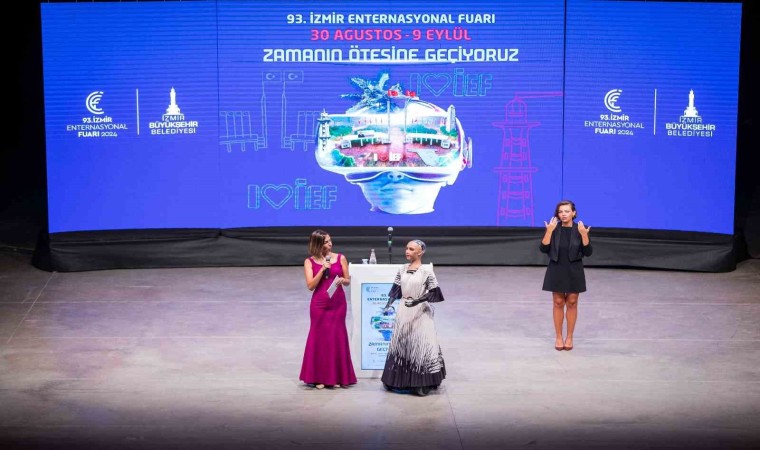 Teknoloji temasıyla yapılan İzmir Enternasyonal Fuarı’nda sürpriz konuk olarak dün sahneye çıkan robot Sophia, resepsiyonda da protokolle buluştu. Robot Sophia, İzmir Enternasyonal Fuarı’nın geleceğe atılan adımların başladığı bir fuar olduğunu söyledi ve “Her ne kadar teknoloji gelişse de insan ruhunun sıcaklığı olmadan bu yeniliklerin bir anlamı olmaz” dedi.