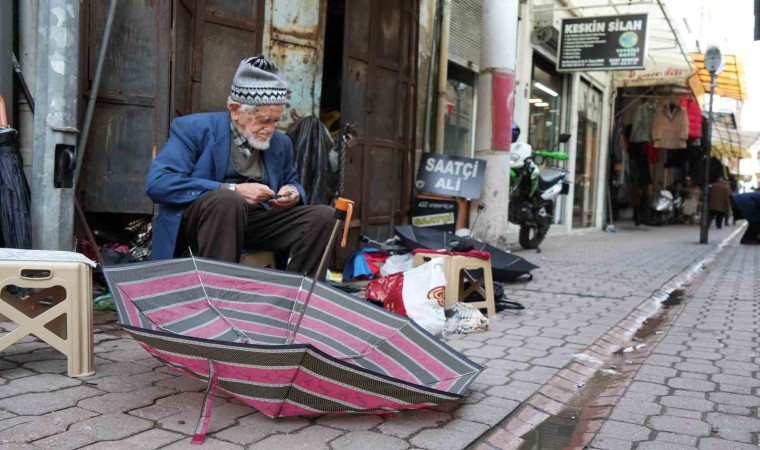 SAMSUN (İHA) – Samsun’da vatandaşlar, şehrin tek şemsiye tamircisi olan 94 yaşındaki Dursun Yıldız’ın başında kendilerine sıra gelmesi için kuyrukta bekliyorlar.