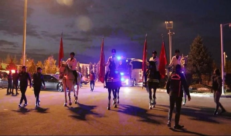 UEFA Uluslar B Ligi 4. Grup’ta yarın Galler ile RHG Enertürk Enerji Stadyumu’nda karşılaşacak A Milli Futbol Takımı akşam saatlerinde Kayseri’ye ulaştı. Özel uçakla Kayseri’ye inen millileri Kayseri İl Emniyet Müdürlüğü’ne bağlı atlı polisler karşıladı. Havaalanı çıkışana kadar millilere eşlik eden atlı polisler, yerini araçlı polis kortejine bıraktı.