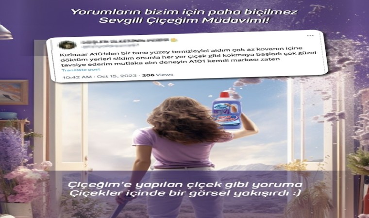 A101 Pazarlama Müdürü Yeliz Yahşi Bilgiç, projeye ilişkin yaptığı açıklamada, “Müşterilerimize daha etkili ve kişiselleştirilmiş bir deneyim sunmayı hedefleyen bir marka olarak teknolojiyi en etkin şekilde kullanmaya devam ediyoruz. Şirketimizin ürünlerine olan müşteri bağlılığı ve memnuniyeti bizler için çok değerli ve anlamlı... Bu bağı daha da güçlendirmek ve teşvik etmek adına sosyal medyada paylaşılan olumlu yorumları, yapay zeka ile görselleştirerek takipçilerimizle buluşturduk. Dijital mecralarda müşteri deneyimini daha interaktif ve katılımcı hale getirmeyi hedefliyoruz” ifadelerini kullandı.