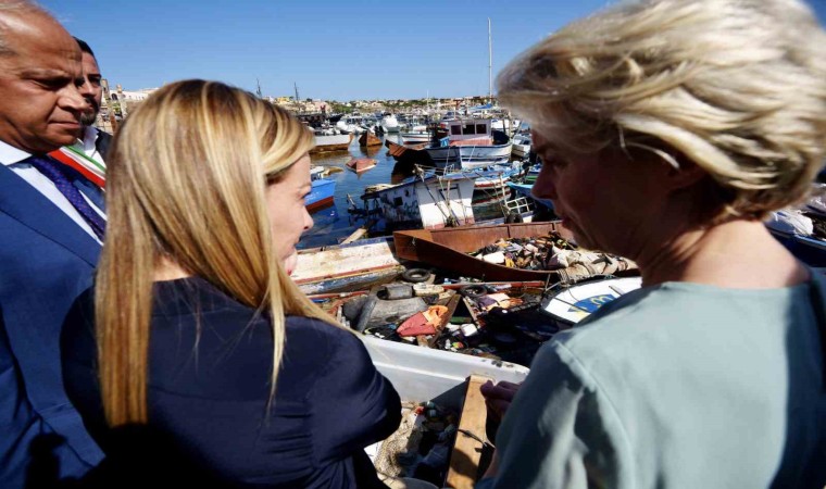 Avrupa Birliği Komisyonu Başkanı Ursula von der Leyen, göçmen sorunuyla gündeme gelen İtalya’nın Lampedusa Adası’nı ziyaret ederken, İtalya Başbakanı Giorgia Meloni ile ortak basın toplantısı düzenledi.