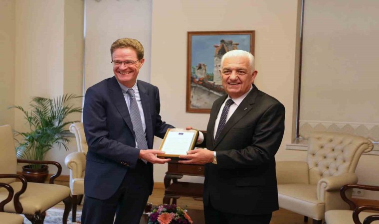Avrupa Birliği Türkiye Delegasyonu Başkanı Büyükelçi Nikolaus Meyer-Landrut Muğla Büyükşehir Belediye Başkanı Dr. Osman Gürün’ü ziyarette birkaç gündür Muğla’da çeşitli etkinliklere katıldıklarını ve korunmuş yapısı, tarihi dokusu ile Muğla’yı çok beğendiğini söyledi. Büyükelçi Nikolaus Meyer-Landrut; “Öncelikle bizleri ağırladığınız tarihi belediye binanızı ve yapısını çok beğendim. Muğla genelinde yapıların korunmuş olması da ayrıca güzel. Muğla’da birkaç gündür çeşitli etkinliklere katıldık. Özellikle Büyükşehir Belediyesi’nin denizleri korumak için yaptığı çalışmaları yerinde görme fırsatı bulduk ve çok etkilendik. Temiz deniz, temiz çevre ile mümkün. Atıkları ne kadar azaltırsak hem denizleri hem çevremizi korumuş oluruz. Gelecek nesillerin çevre konusunda farkındalığının artması çok önemli ve doğanın kendini geri getirebileceğini, yenileyebileceğini asla unutmayalım” dedi.
