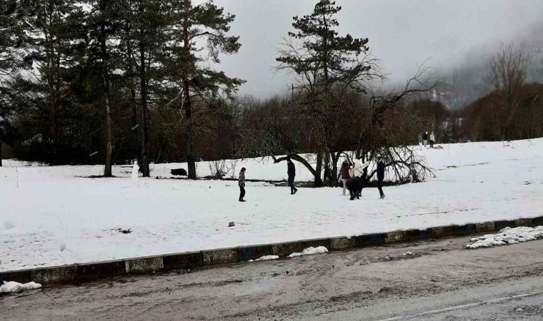 Abant Gölü Milli Parkı’nda sabahın erken saatlerinde sağanak yağış etkili oldu. Öğle saatlerinde etkisini kaybeden sağanak, yerini kar yağışına bıraktı. Geçtiğimiz hafta etkili olan kar yağışı ve bugün başlayan yağışla birlikte kar kalınlığı 15 santimetreye ulaştı. Hafta sonu tatilini Abant’ta doğayla iç içe geçirmek isteyen tatilciler, kar topu oynayarak karın tadını çıkarttı. Kar yağışının akşam saatlerine kadar aralıklarla sürmesi bekleniyor.