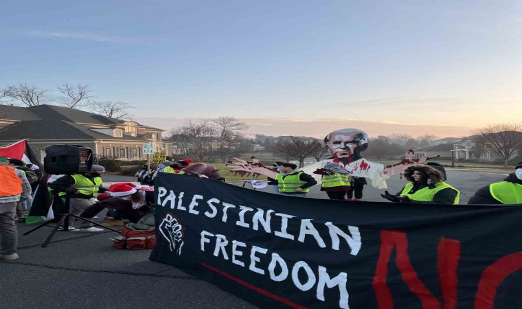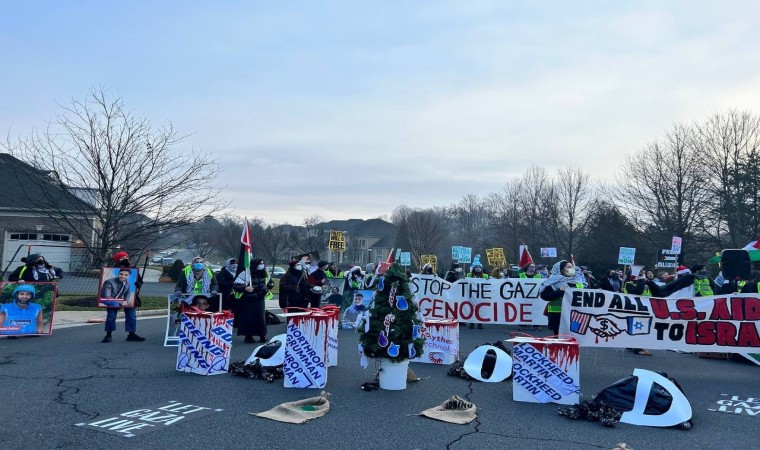 İsrail’in Gazze Şeridi’ne yönelik saldırıları 80 gündür devam ederken, ABD’liler İsrail’e verilen silah desteğine tepki göstermeyi sürdürüyor. ABD’nin başkenti Washington DC ve Virginia eyaletlerinde bir araya gelen protestocular, ABD Savunma Bakanı Lloyd Austin’in ve Ulusal Güvenlik Danışmanı Jake Sullivan’ın evleri önünde İsrail karşıtı gösteri düzenledi. Ellerinde Filistin bayrakları bulunan göstericiler sık sık “Özgür Filistin", "Nehirden denize kadar Filistin özgür olacak”, "İsrail’in suçları için daha fazla para yok" ve “Ateşkes şimdi” sloganları attı. Göstericiler ellerinde “Gazze’deki soykırımı durdurun” ve “İsrail’e tüm ABD yardımlarını kesin” yazılı pankartların yanı sıra ABD Başkanı Joe Biden’ın ağzı ve elleri kan içinde olarak gösterildiği bir poster taşıdılar.