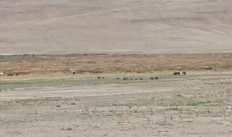 Van’ın Özalp ilçesinde aç kalan domuz sürüsü mahalleye indi.