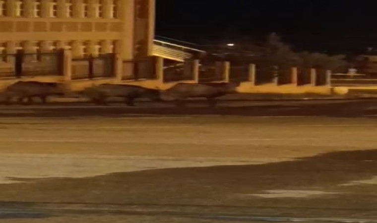 Ardahan’da domuzlar gece yarısı KYK yurdunun bahçesine girerek, çöp konteynerlerinin etrafında ve bahçe içerisinde yiyecek aradı. İnsanların sokakta bulunmadığı dakikalarda rahatça gezinen yaban domuzları, yiyecek bulmak için uzun süre çevrede dolaştı. Yaklaşık iki saat bu şekilde dolaşan ve beslenmeye çalışan domuzlar daha sonra gözden kayboldu.