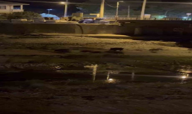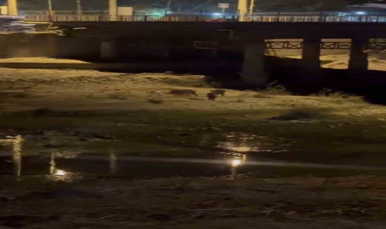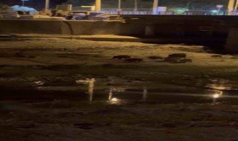 Balıkesir’in Havran ilçesinde dağda aç kalan domuzlar ilçe merkezinde bulunan çayın içinde yiyecek aradı. Havran Çayı içerisinde yiyecek arayan domuz ailesini gören vatandaşlar, o anları cep telefonlarıyla kayda aldı.