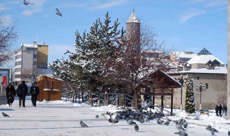 Türkiye’nin en soğuk kentlerinden Erzurum’da esnaf ve vatandaşlar, kış mevsimi boyunca her sabah yem bulamayan güvercinleri besliyor.