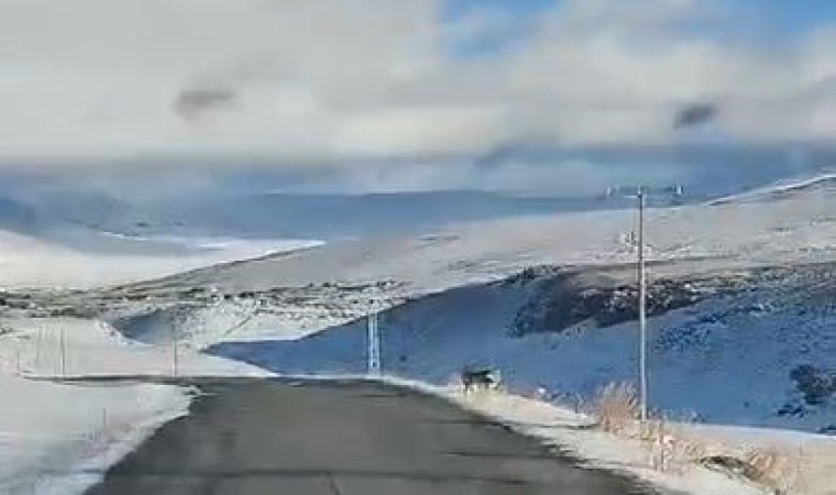 Şiddetli kar yağışının etkili olduğu Ardahan’da yiyecek bulmakta zorlanan kurtlar, kırsal alandan yerleşim birimlerine inmeye başladı.