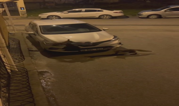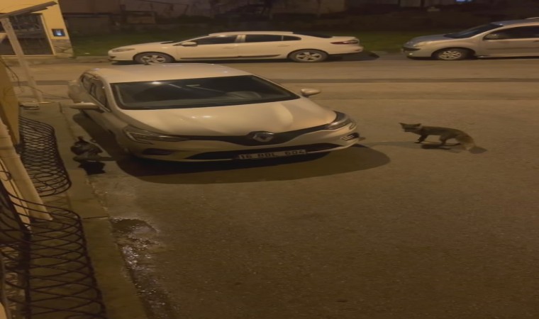 Bursa’da aç kalan tilki, şehir merkezine kadar indi. Tilkinin sokak arasında gördüğü hindiyi kovalaması bir vatandaşın yansıdı.