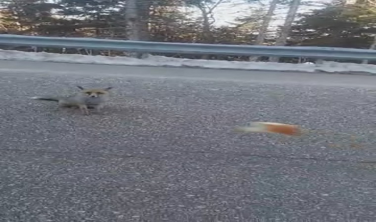 Uludağ’da aç kalınca yola inen tilkiyi gören vatandaş, sevimli hayvanı elleriyle besledi. Aç kalan tilki, vatandaşın attığı ekmekleri yerken tilkiyi besleyen vatandaş o anları kamerası ile çekerek ölümsüzleştirdi.
