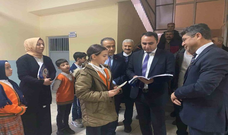 Açılış sonrası kütüphanedeki kitapları inceleyen Kaymakam Partal, öğrenciler ile kitap üzerine sohbet etti.
