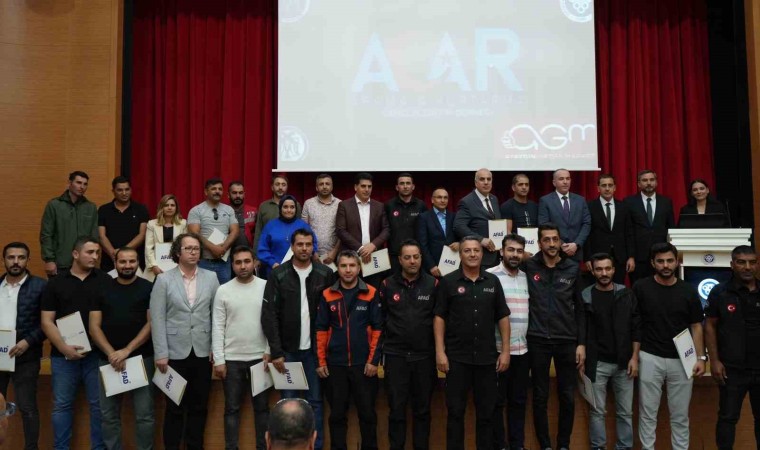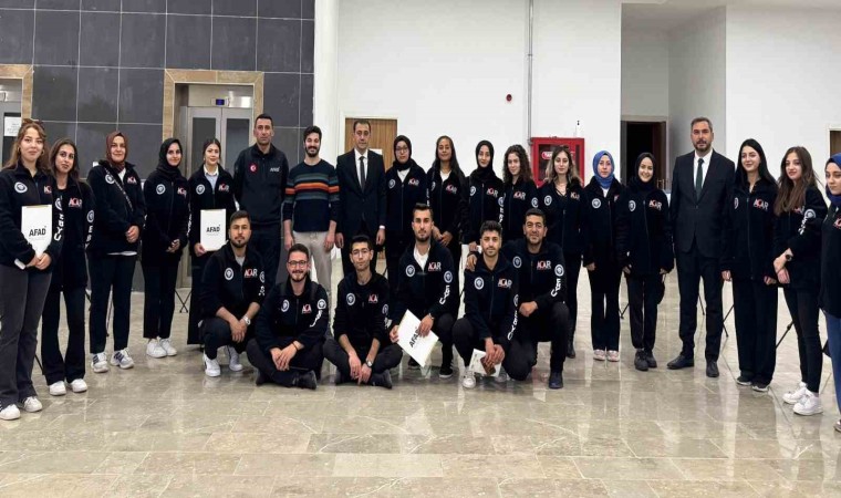 Konuşmaların ardından Erzincan İl Afet ve Acil Durum Müdürü Cengiz Çavuş ile EBYÜ Rektör Yardımcısı Prof. Dr. Çağrı Çırak tarafından sertifika dağıtımı gerçekleştirildi.