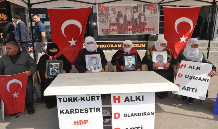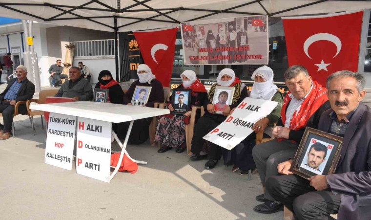 HDP Muş İl Başkanlığı önünde oturma eylemi başlatan aileler, sağanak altında ve soğuk havaya rağmen eylemlerini bu hafta da sürdürdü. HDP Muş İl Başkanlığı önünde oturma eylemini başlatan aileler, 118 haftadır kararlı bir şekilde devam ettirdikleri evlat nöbetinde çocuklarına seslendiler. HDP İl Başkanlığı binası önünde bir araya gelen aileler, "Halk düşmanı parti", "Evlatlarımızı vereceksiniz", "Ha HDP ha PKK", "Türk-Kürt kardeştir, HDP kalleştir", "Halkı dolandıran parti", "Anneler direniyor", "Artık yeter yakamızdan düşün" ve "Yeter artık evlatlarımızı bırakın" yazılı pankartlar açtı. Çocuklarının fotoğraflarıyla eyleme katılan anne ve babalar, evlatlarına "teslim ol" çağrısında da bulundu.