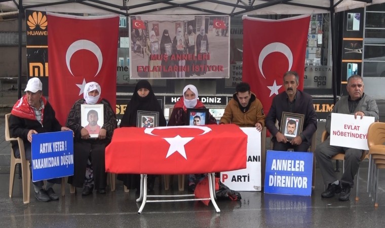 Muş’ta, çocuklarının terör örgütü PKK tarafından dağa götürülmesinden HDP’yi sorumlu tutan aileler, partinin il başkanlığı önünde oturma eylemi yaptı. HDP Muş İl Başkanlığı önünde oturma eylemini başlatan aileler, 117 haftadır kararlı bir şekilde devam ettirdikleri evlat nöbetini sağanak altında da sürdürüyor. Çocuklarına kavuşma ümidiyle Diyarbakır annelerinin başlattığı eyleme destek veren aileler, her hafta çarşamba günü yaptıkları eylemi bu hafta da sürdürdü. HDP İl Başkanlığı binası önünde bir araya gelen aileler, "Halk düşmanı parti", "Evlatlarımızı vereceksiniz", "Ha HDP ha PKK", "Türk-Kürt kardeştir, HDP kalleştir", "Halkı dolandıran parti", "Anneler direniyor", "Artık yeter yakamızdan düşün" ve "Yeter artık evlatlarımızı bırakın" yazılı pankartlar açtı. Çocuklarının fotoğraflarıyla eyleme katılan anne ve babalar, evlatlarına "teslim ol" çağrısında bulundu.