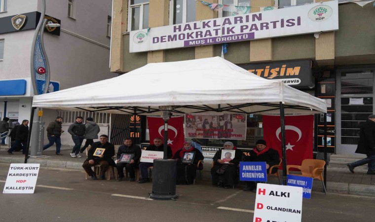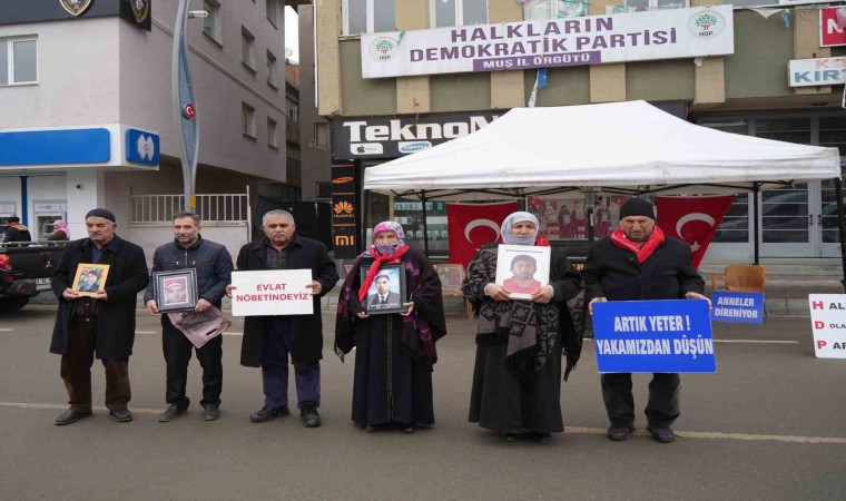 Çocuklarının terör örgütü PKK mensupları tarafından dağa kaçırıldığı iddiasıyla HDP Muş İl Başkanlığı önünde oturma eylemi başlatan aileler, kararlı bir şekilde devam ettirdikleri evlat nöbetine bu hafta da devam etti. HDP İl Başkanlığı önünde toplanan aileler, "Halk düşmanı parti", "Evlatlarımızı vereceksiniz", "Ha HDP ha PKK", "Türk-Kürt kardeştir, HDP kalleştir", "Halkı dolandıran parti", "Anneler direniyor", "Artık yeter yakamızdan düşün" ve "Yeter artık evlatlarımızı bırakın" yazılı pankartlar açtı. Her çarşamba parti önünde bir araya gelen anne ve babalar, fotoğraflarını taşıdıkları çocuklarına teslim olmaları için çağrıda bulundu.