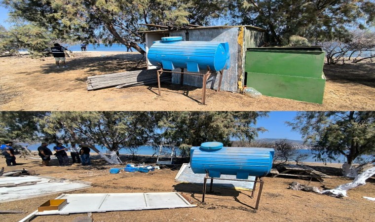 Muğla’nın Bodrum ilçesinde adaya inşa edilen kaçak kulübe söküldü.