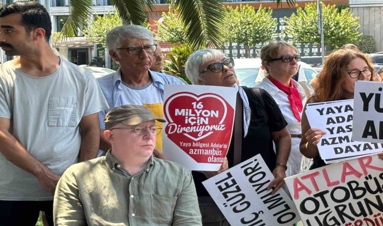 Adalar’da hizmete alınan ve ada sakinlerinin ‘Azmanbüs’ olarak adlandırdığı elektrikli minibüsün bölgeye zarar verdiğini savunan bir grup, Saraçhane’deki İstanbul Büyükşehir Belediyesi binası önünde eylem yaparak ulaşım araçlarının kaldırılmasını istedi.