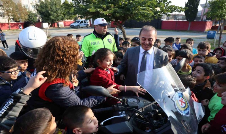 Adana’da polis eğitim öğretimin ikinci dönemin başlamasıyla okul önlerinde uygulama yaparken İl Emniyet Müdürü Ahmet Hakan Arıkan uygulamaları denetleyip sonra okullarda öğrencilerle bir araya geldi.