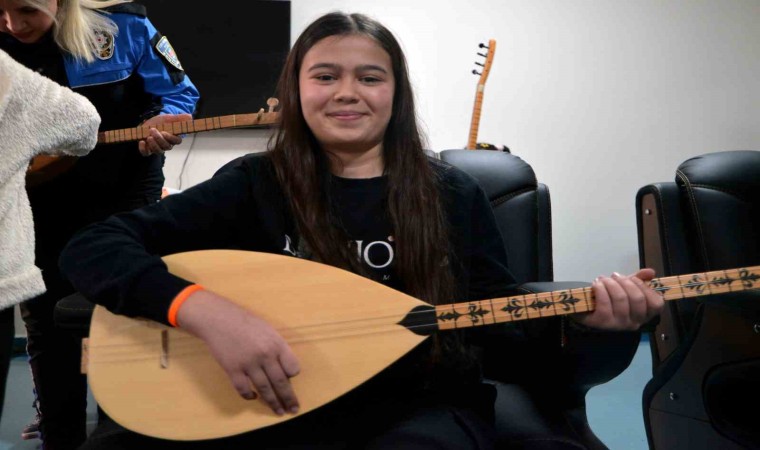 Nur Sima Sümbül (10), “Kendimi daha da geliştirmek istiyorum. Burada mini konser vereceğiz çok mutluyum. Bu imkanı sundukları için çok teşekkür ediyorum. Polisler bize saz hediye ettiği için çok teşekkür ederim, çok mutluyum” sözlerine yer verdi.