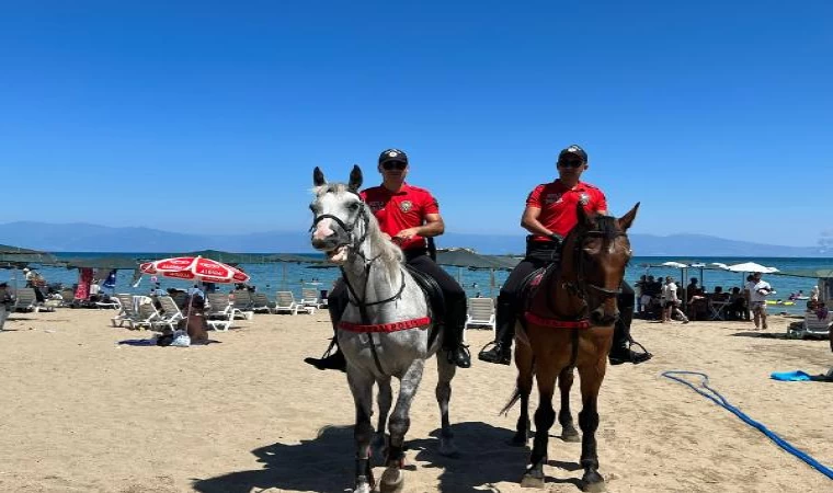 Ceyhun ÖZER/YUMURTALIK (Adana), (DHA)- ADANA’nın Yumurtalık ilçesindeki sahilde güvenliğin sağlanması amacıyla atlı polisler devriye geziyor.