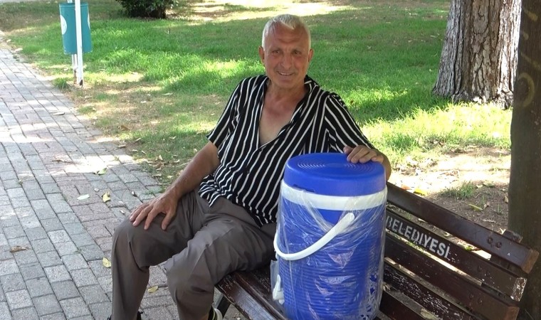 Bu sırada gölgede termosla oturan Ali Yılmaz ise dikkat çekti. Yılmaz, Adana sıcağı nedeniyle dışarı artık termosla çıktığını ve artık bu şekilde gezdiğini söyledi.