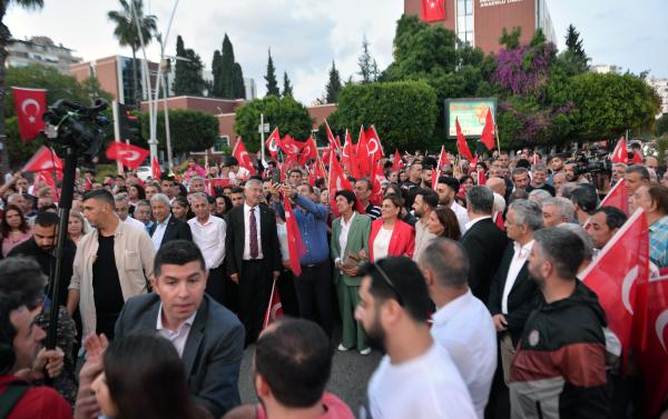 Adana Büyükşehir Belediyesi ve CHP İl Başkanlığı tarafından düzenlenen fener alayı yürüyüşüne Büyükşehir Belediye Başkanı Zeydan Karalar, Seyhan Belediye Başkanı Akif Kemal Akay, CHP Adana İl Başkanı Mehmet Çelebi’nin yanı sıra CHP Adana milletvekilleri ile çok sayıda vatandaş katıldı. Büyükşehir Belediyesi önünde toplanan kalabalık grup, ellerinde taşıdıkları Türk bayrakları ve meşalelerle, marşlar okuyarak Uğur Mumcu Bulvarı'na yürüdü. Çok sayıda vatandaş, üzerinde Türkiye Cumhuriyeti kurucusu Mustafa Kemal Atatürk ve Türk bayrağı baskısı olan tişörtleri giyerek yürüdü. Polis ekiplerinin yoğun güvenlik önlemi aldığı yürüyüş, Uğur Mumcu Meydanı'nda sona erdi. Etkinlik, Edip Akbayram konseriyle devam etti. (DHA)