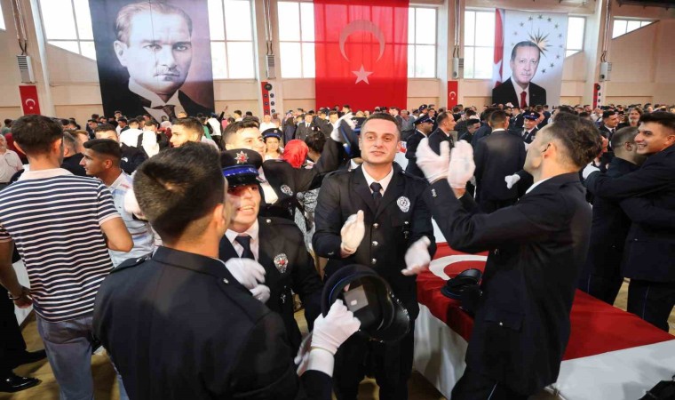 350 polis adayı yeminlerini edip kep attı. Duygu selinin yaşandığı yemin töreninde mezun olan adaylar ailelerine sarılıp sevinç gözyaşı döktü.
