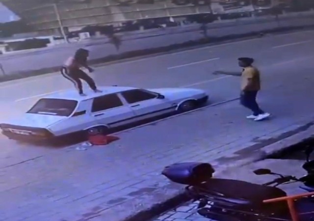 ADANA’DA BİR KADIN OTOMOBİLİN TAVANINA ÇIKIP DANS ETTİ